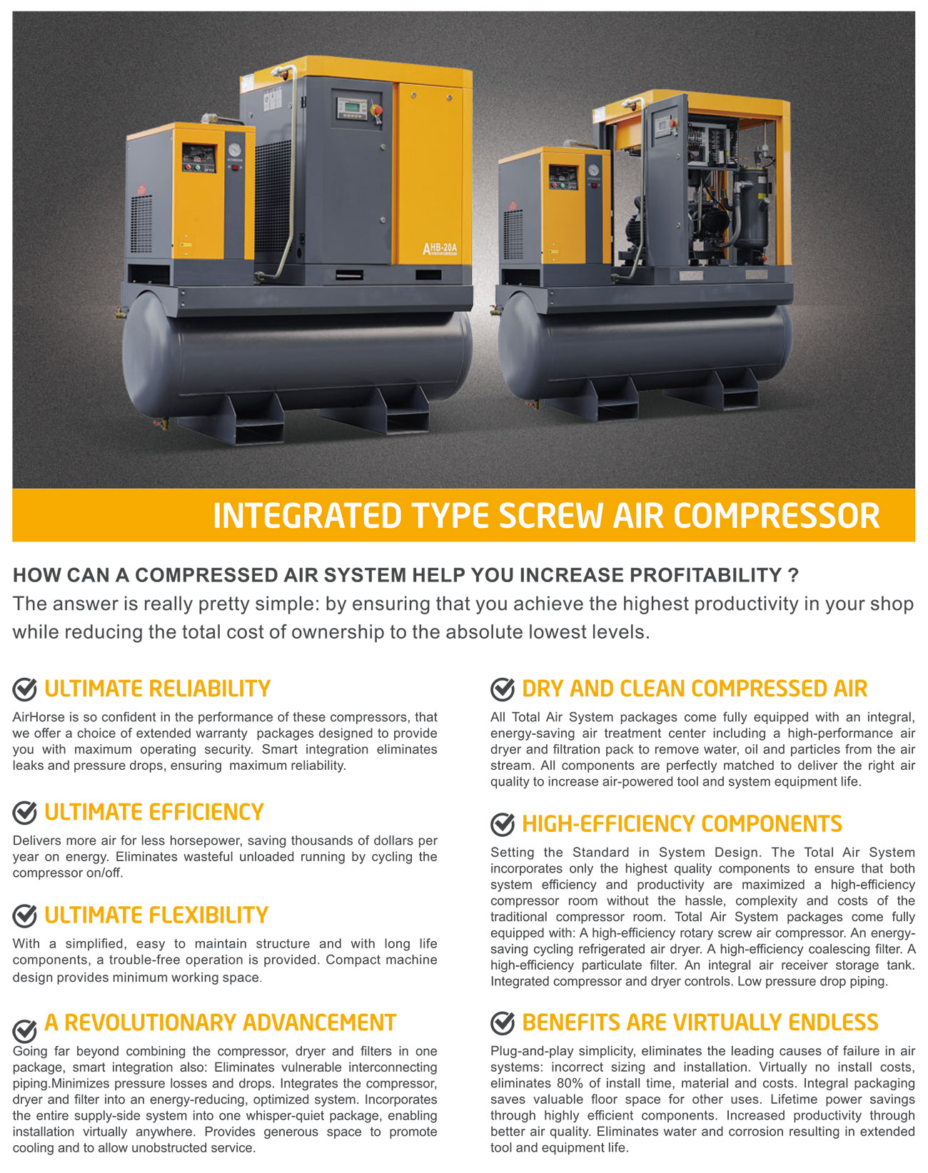 AIRHORSE INTEGRATED TYPE SCREW AIR COMPRESSOR