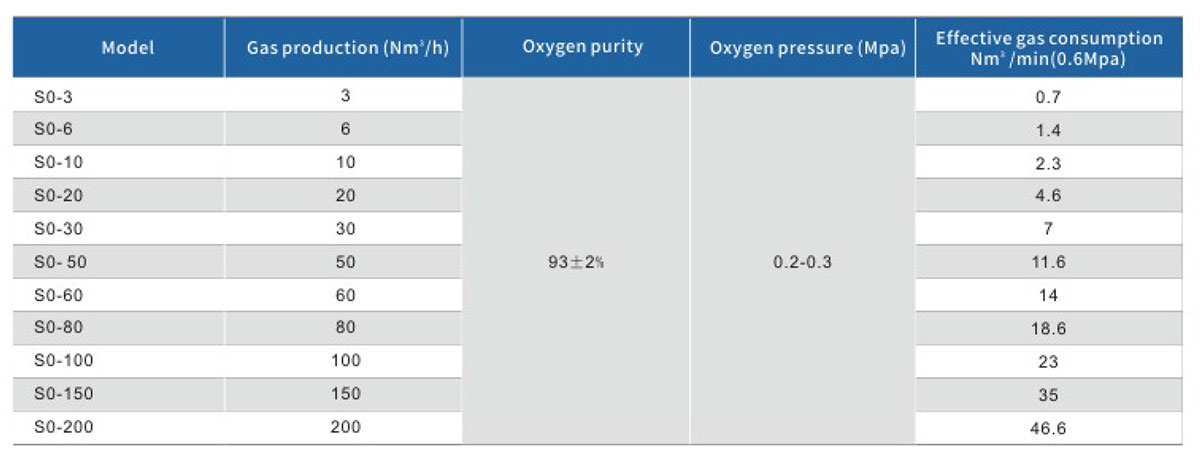 SO series pressure swing adsorption oxygen generator uses high-quality zeolite molecular sieve as adsorbent and utilizes the principle of pressure swing adsorption to obtain oxygen directly from compressed air.